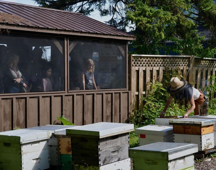 Rencontrez les abeilles - Rejoignez-nous dans le rucher où nous vous montrerons les ruches actives et les abeilles à l'intérieur !